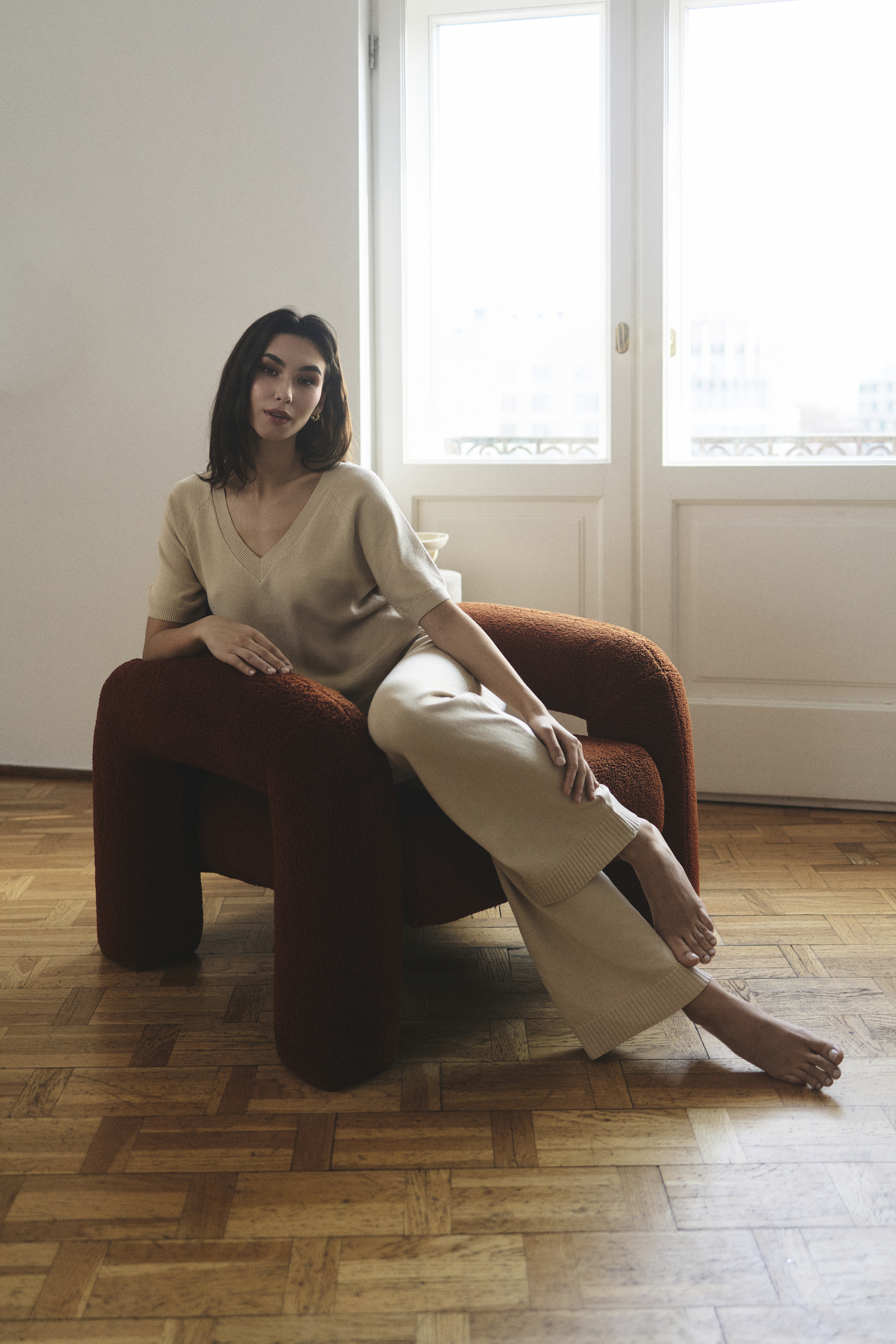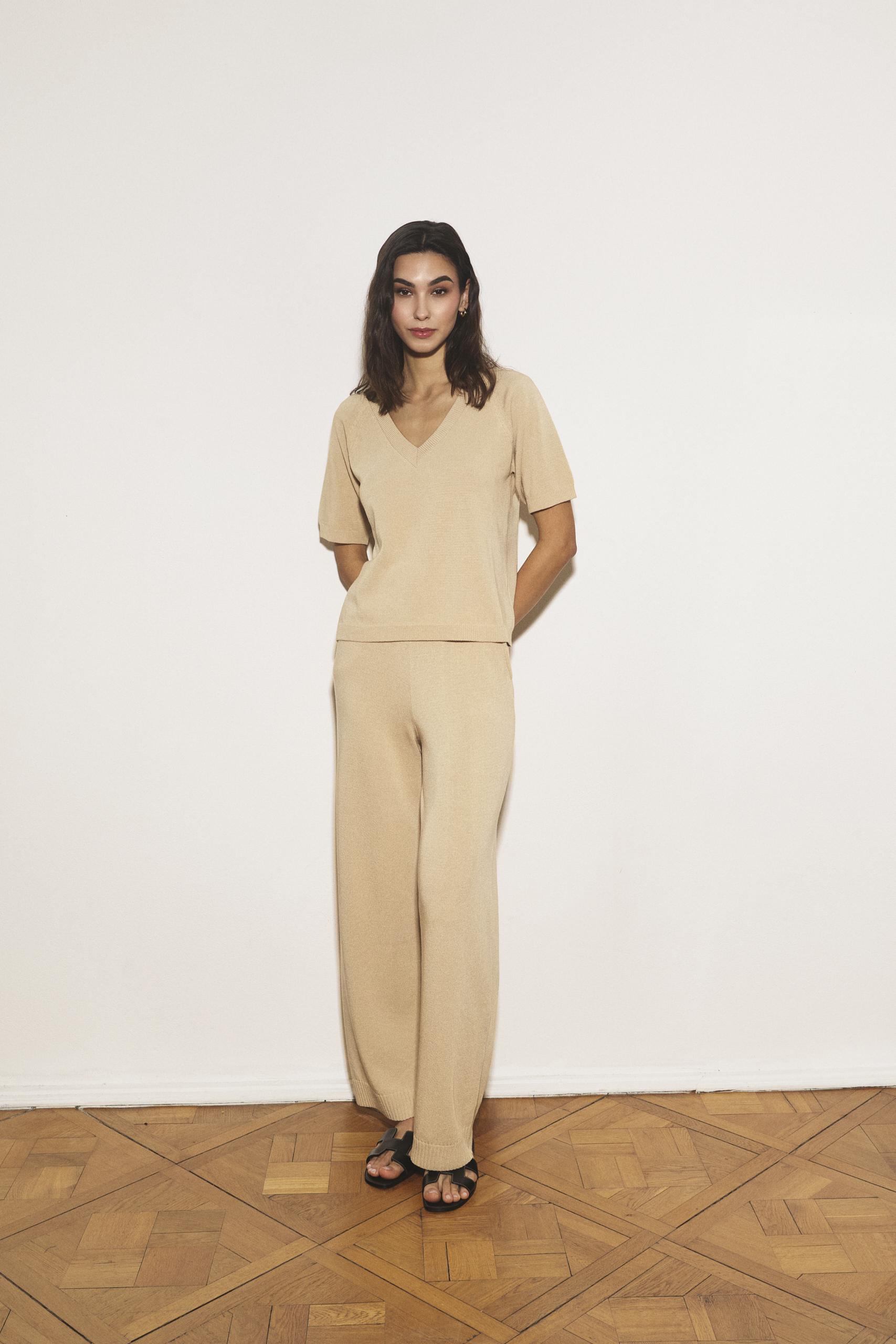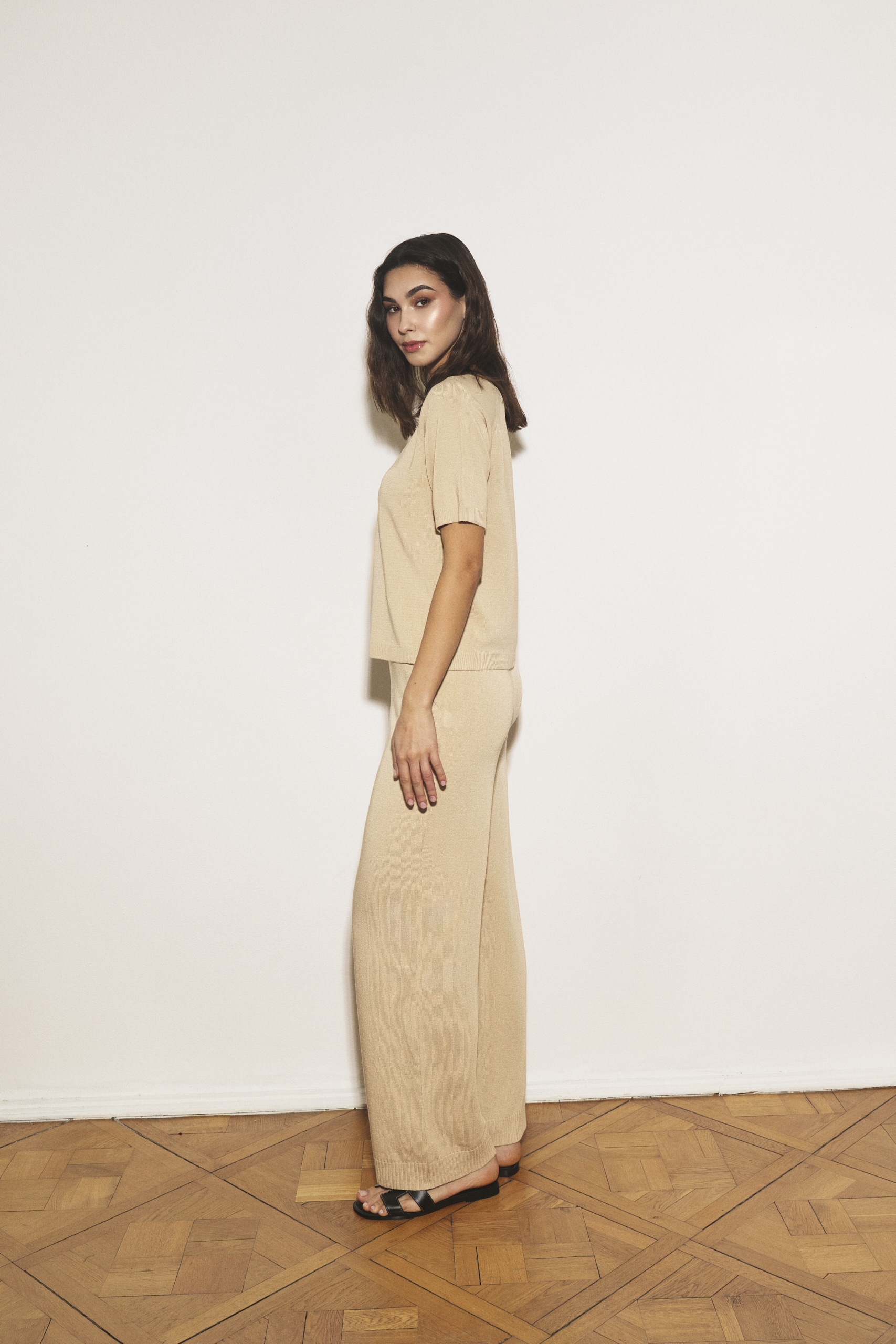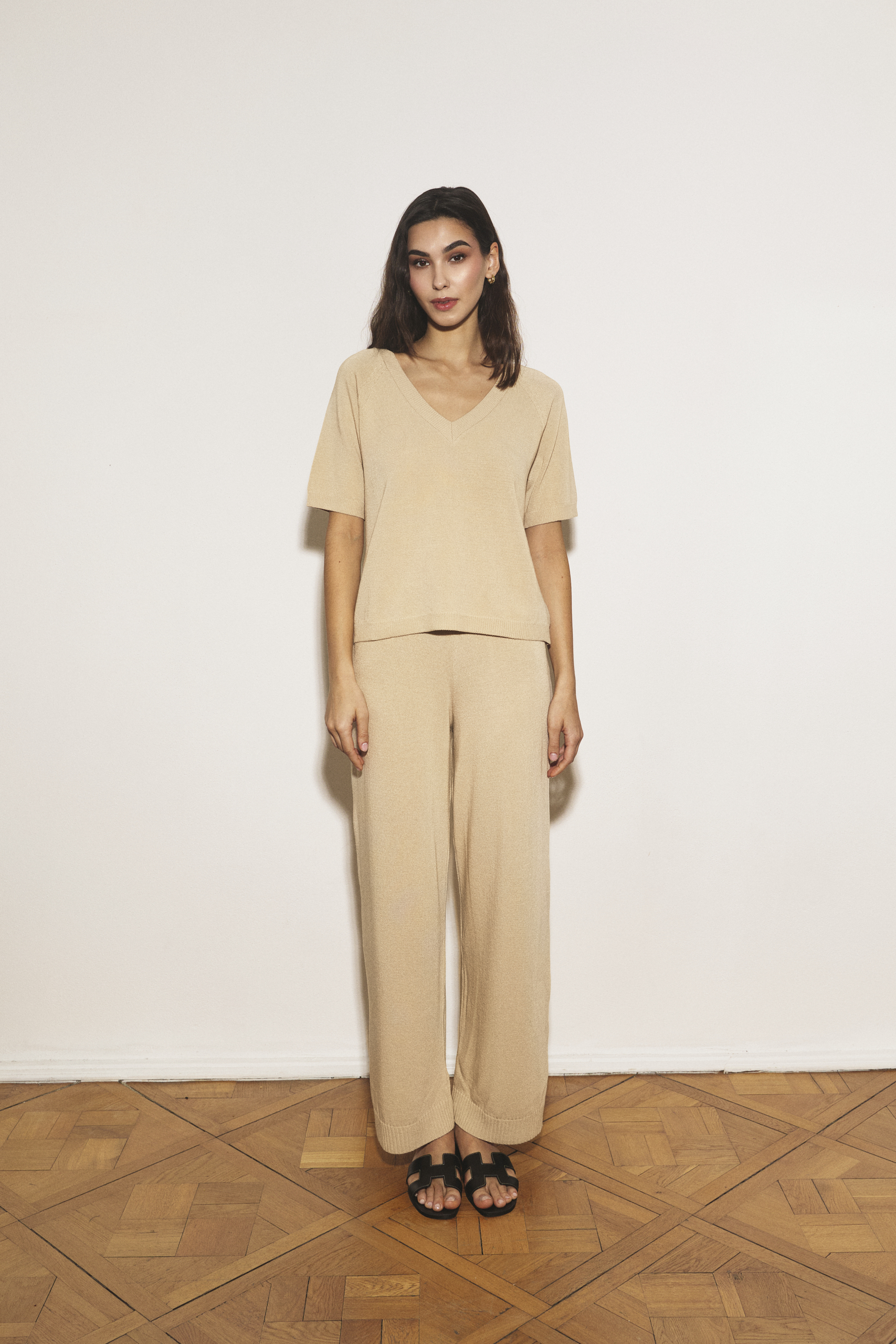 - Element kolekcji: Bluzka została zaprojektowana jako dopełnienie kompletu ze spodniami Amelié, tworząc lekki i stylowy zestaw na cieplejsze dni.