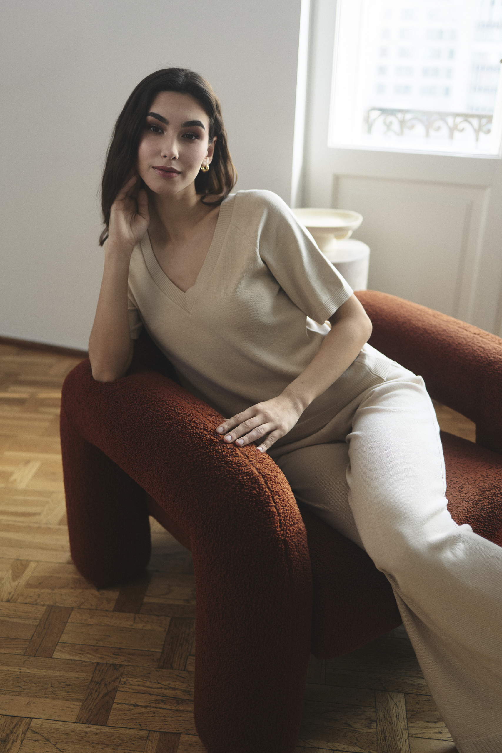 Bluzka Amelié to klasyczny, elegancki dzianinowy t-shirt. Wykonana z wysokiej jakości włoskiej dzianiny wiskozowej, łączy w sobie minimalistyczny design z subtelnym, luksusowym wykończeniem. To idealna propozycja dla kobiet ceniących szlachetne materiały w prostym wydaniu.