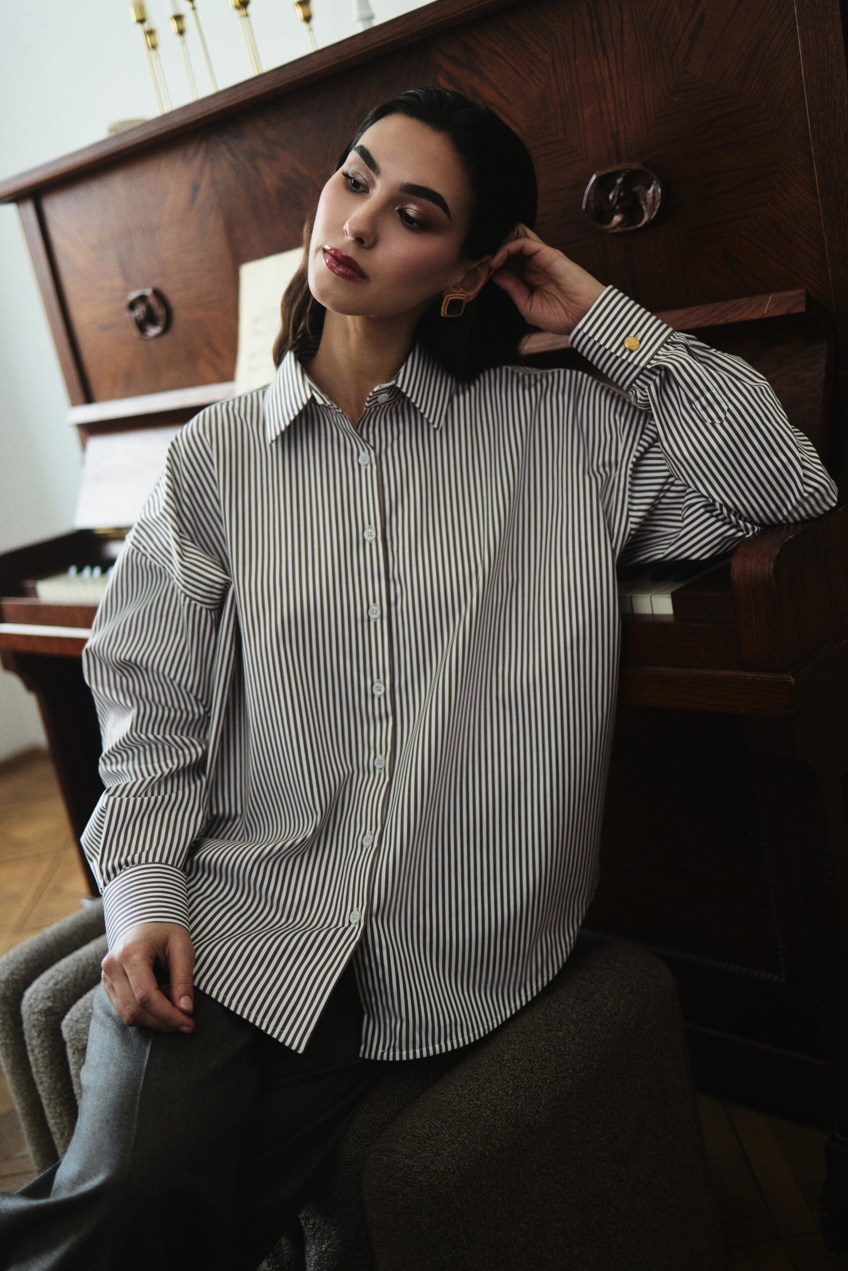 Koszula oversize Classic w paski czekoladowe, to klasyczna i jednocześnie elegancka koszula. Inspiracją do powstania koszuli był styl Paryżanek i koszula z męskiej szafy.