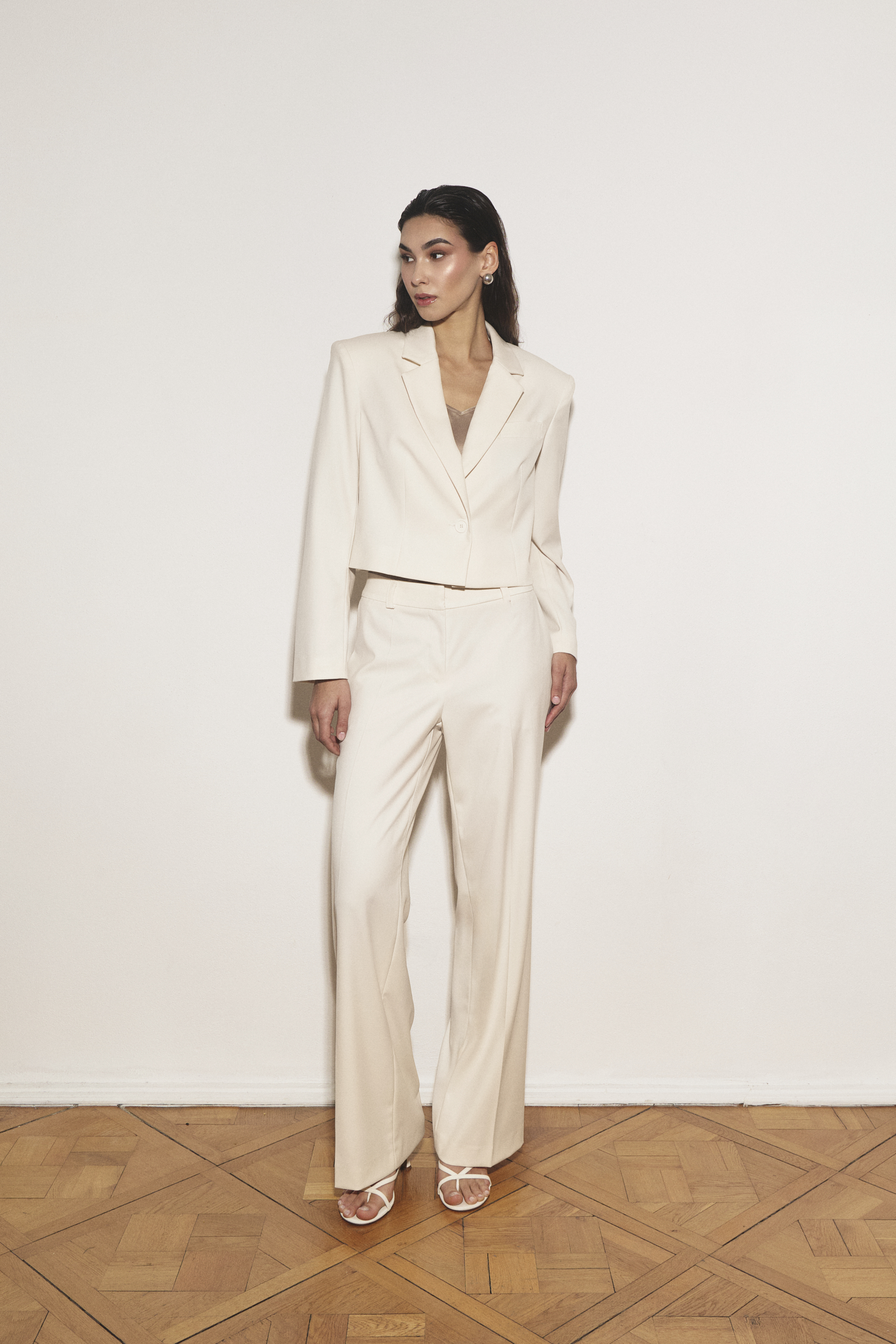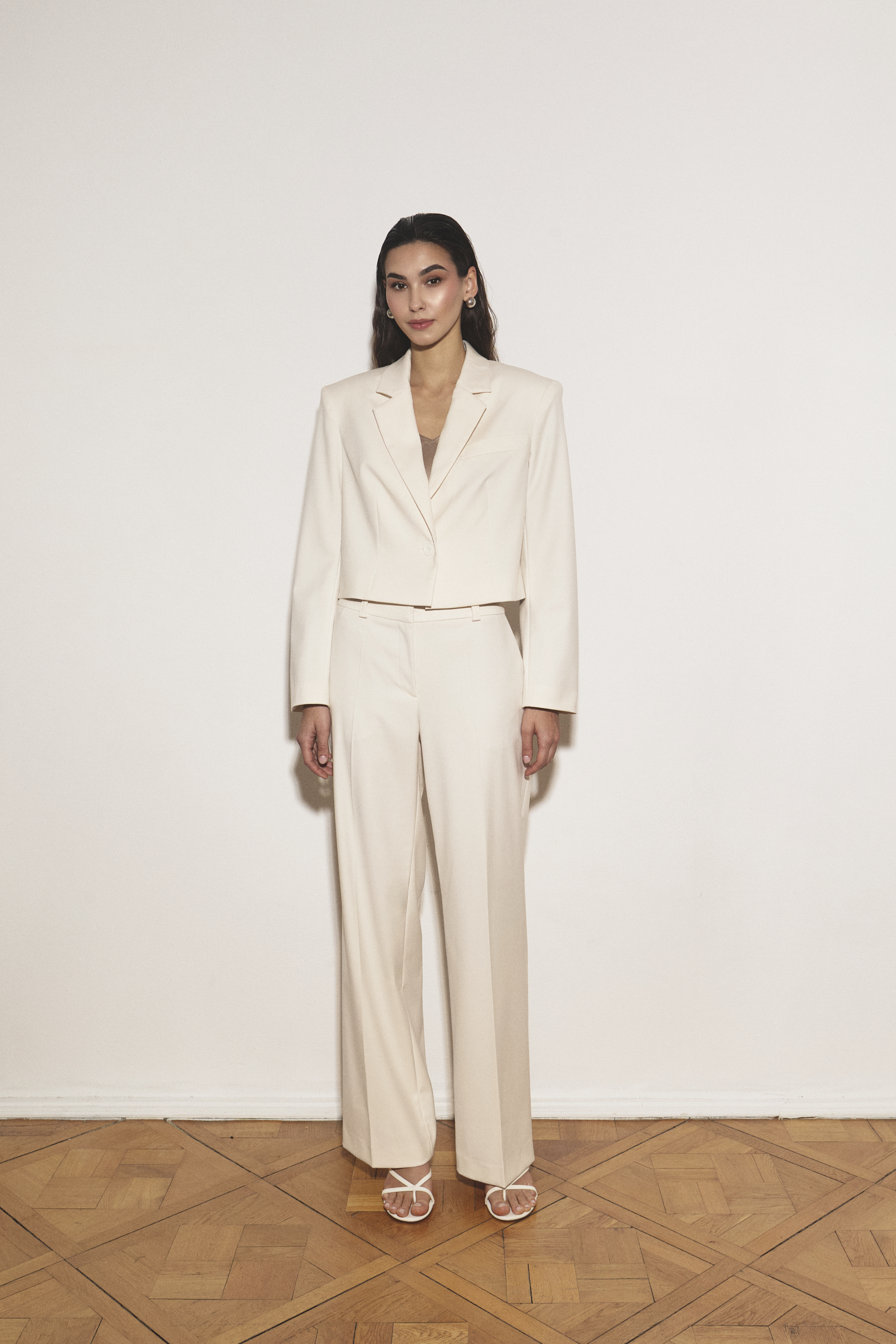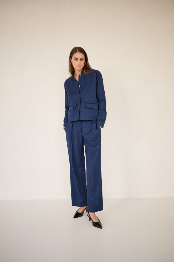 Stylizacja: Tworzy spójny total look w komplecie ze spodniami lub szortami z tej samej linii. Marynarka daje możliwość wielu połączeń stylizacyjnych. Może być zestawiana z kolorem czerń lub granat (kontrastowo), a także odcienie camel, beż piaskowy, chłodny brąz, kolory ziemi lub dżins.