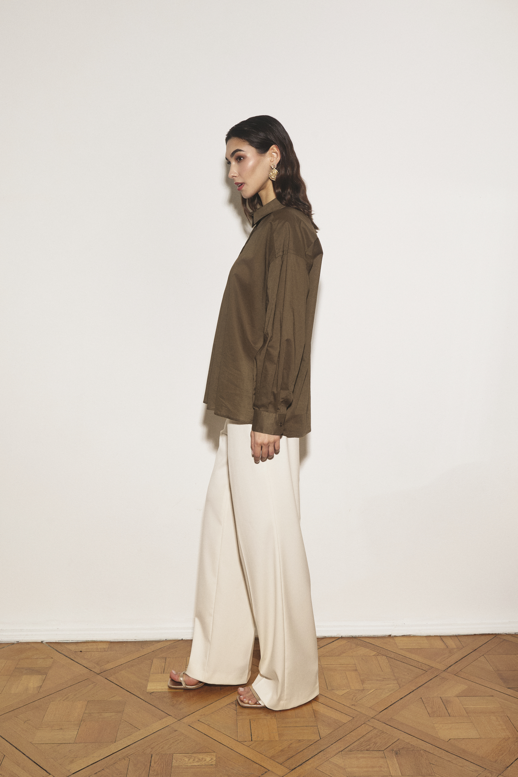 Spodnie Soléne ecru to ponadczasowa klasyka – eleganckie, długie spodnie o szerokich i prostych nogawkach z wyraźnie zaznaczonym kantem.
