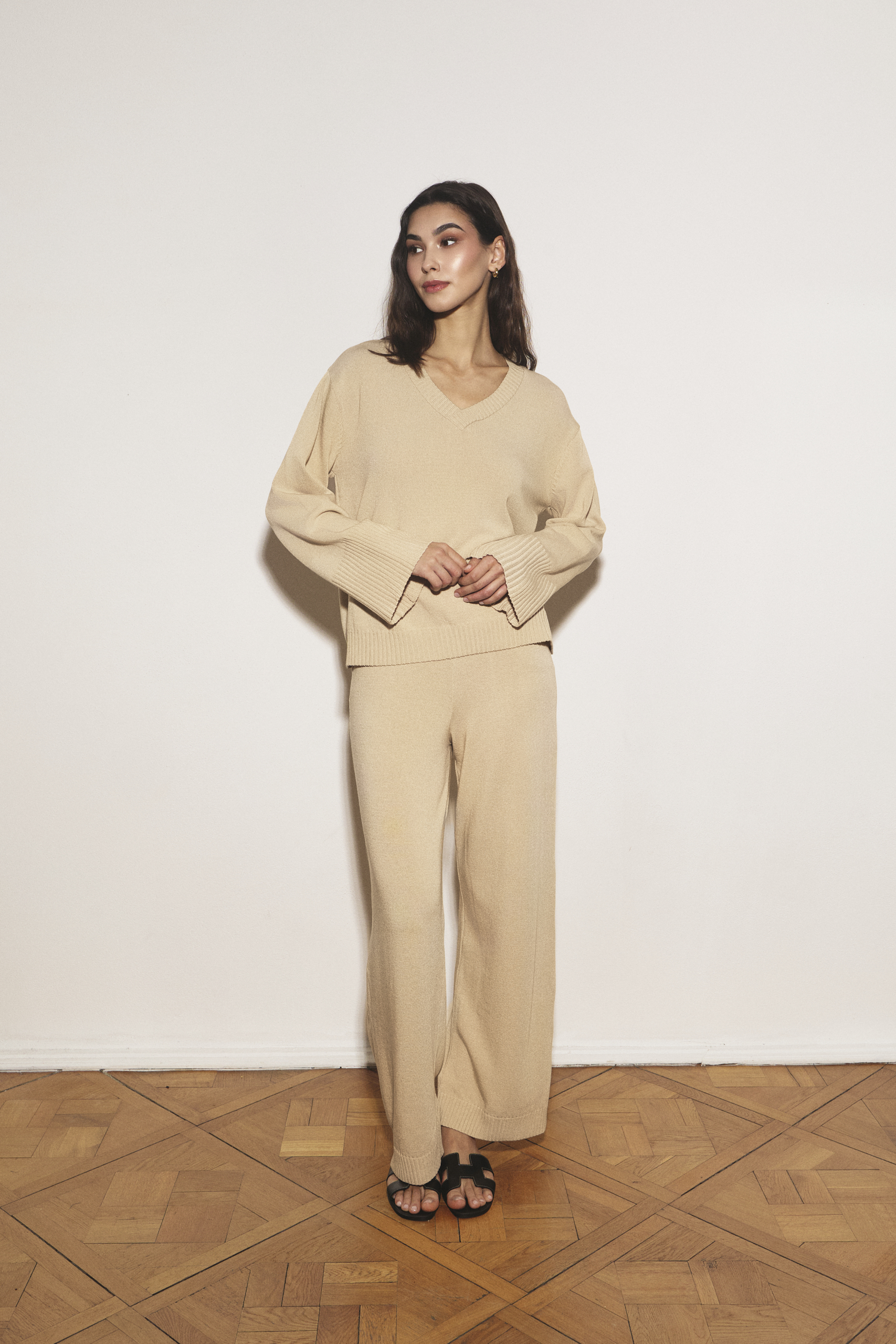 - Wielofunkcyjność: Zaprojektowany do noszenia w komplecie ze spodniami Amelié z tej samej dzianiny, tworząc wyrafinowany i wygodny total look w klimacie „monochrome”.